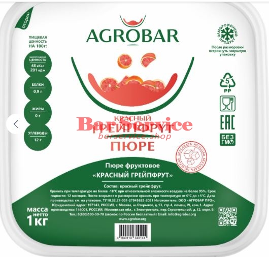 Натуральное пюре AGROBAR из сочного грейпфрута. Очень известный и популярный фрукт, хорош не только в кулинарии, но и для укрепления здоровья.